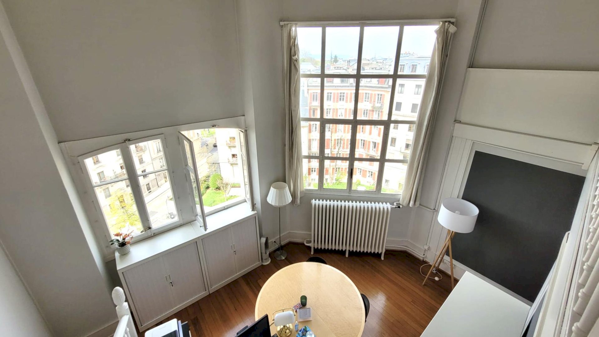 Very bright, unoverlooked and with an unobstructed view of the city of Geneva, it offers an exceptional, calm and pleasant working environment.