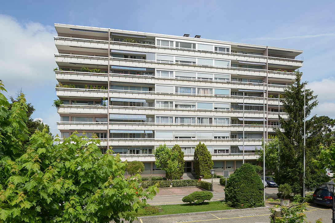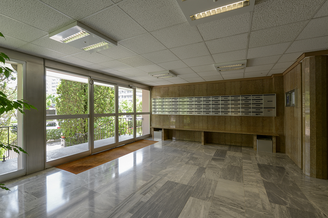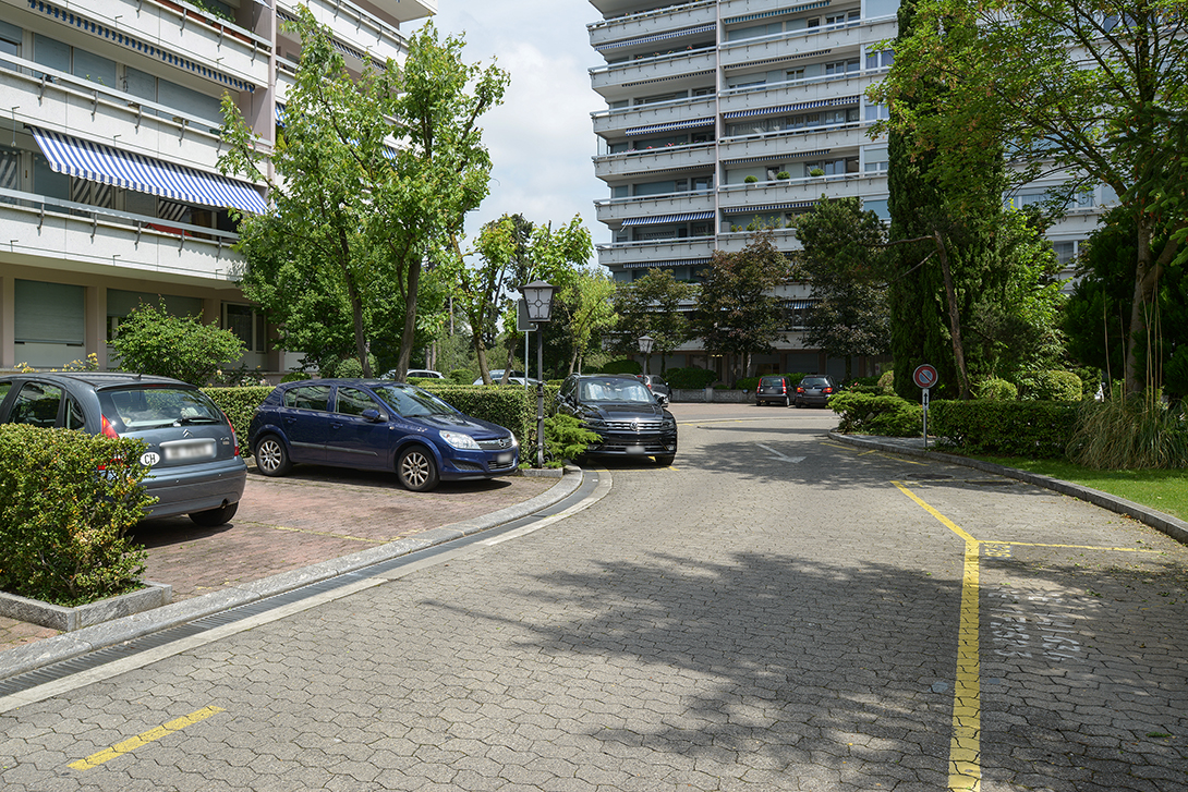 6 pièces & hall comprenant une cuisine agencée et équipée (four, plaques, hotte, frigo, lave-vaisselle) donnant sur un balcon, un séjour donnant sur un balcon, trois chambres donnant sur un balcon, une salle de bains avec wc, une salle de douche avec wc. Un parking en sous-sol obligatoire à CHF 130.00/mois.